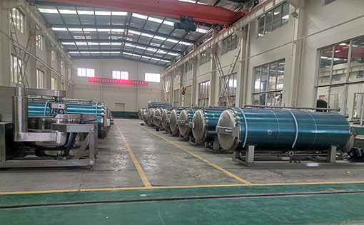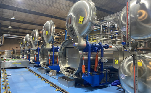 每月可生產殺菌設備20臺/套以上,擁有自動焊接、切割設備、折彎設備等.設備齊全,殺菌釜、裝籃機、卸籃機、 臺車、籃筐、托盤、控制箱、等等配件 的制造和組裝都在桂冠工廠完成,實現 整機的調試和FAT工廠驗收,能幫助設備 “準時”啟動和運行得更快、更順暢。